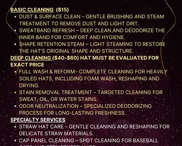 Hat shaping changes the look and fit of your hat. At Style Your Head Too! Hat Boutique, we reshape crowns and brims to give your hat a cleaner style, a better fit, and a look that matches you. Reshaping starts at $45.